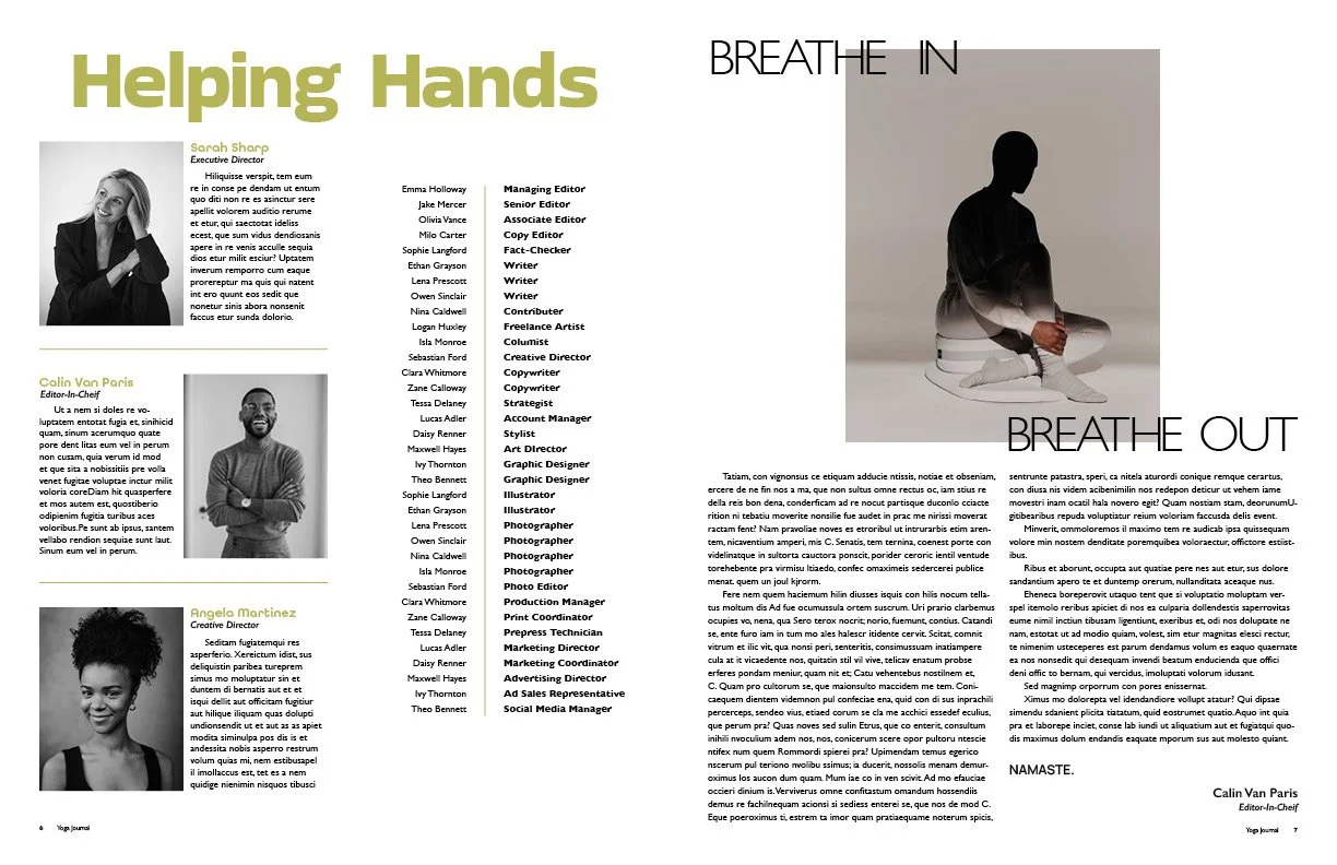 The main issues I wanted to address with my redesign were movement, youthfulness, and color. The original magazine was dull, lacked personality, and did not engage readers through visuals.